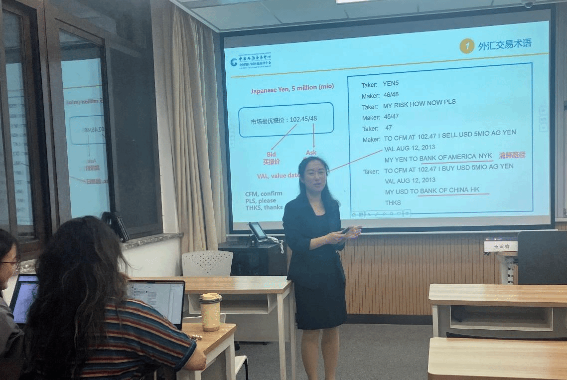 接着,盛老师介绍了外汇交易的术语,用外汇交易中的真实对话展示了诸如直接标价、间接标价、买入价、卖出价、交易日、起息日等概念如何得以应用。并且,盛老师还简要介绍了一些货币代码及其对应的币种,其中包括大家比较熟悉的人民币(CNY)、美元(USD)、日元(JPY),也有一些相对陌生的挪威币(NOK)、瑞典克朗(ISK)、泰铢(THB)、马来西亚林吉特(MYR)等。