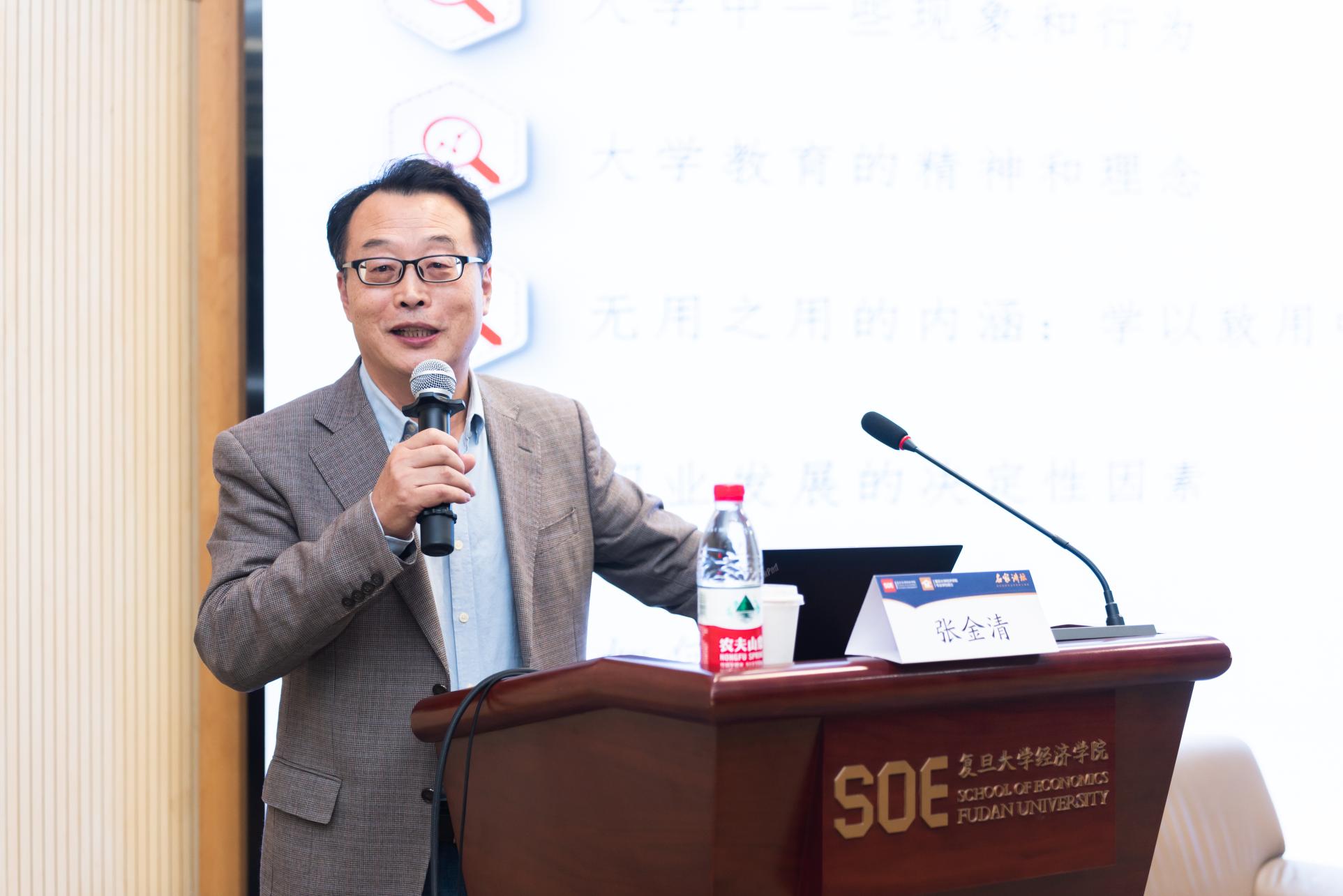 张金清老师结合近年来他在我院专业学位招生、培养、学位工作方面的投入与思考,阐述了专硕研究生中存在的普遍问题,并指出,出现上述问题的本质归根到底是大学精神的缺失。张老师简单介绍了大学的起源和雏形,并借用耶鲁大学前校长理查德·莱文的一句话阐释了何为“大学精神”,即“真正的教育不传授任何知识和技能,却能令人胜任任何学科和职业,这才是真正的教育”。但是,过度的知识、技能的学习和训练,让学生困于其中而失去了创新能力,这也正是我们需要做出改变的地方。