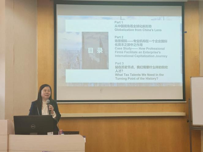 然后,王老师特别指出了中国企业在走向国际化的过程中所面临的最大挑战,即缺乏具备国际化视野和技能的人才。基于这一现状,王老师深入阐述了企业税务管理逐渐趋向专业化的趋势以及专业机构在税务专业人才职业发展中的重要性,详细介绍了税务管理领域的职业晋升通道以及不同级别所需经历的具体时间,帮助同学们对这一领域有了更深入的了解和认识。