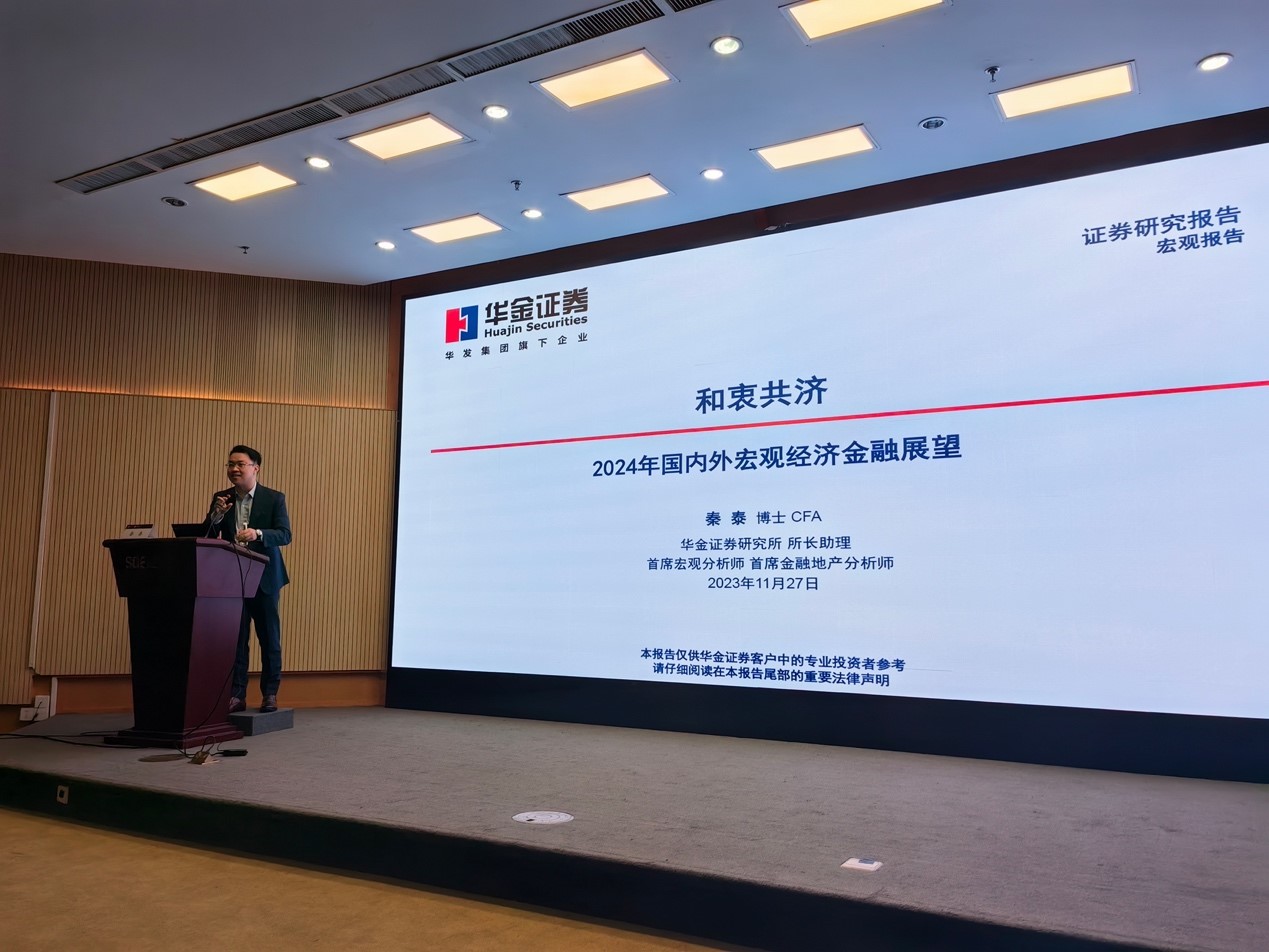 最后,秦老师提出展望,山止川行,风禾尽起,宏观经济筑底向好。2024年预计房地产投资跌幅收窄,出口见底温和改善,加之财政扩张进一步刺激消费复苏的预期,预计全年实际GDP同比增长4.3%左右,稍好于2023年的两年平均增速。10月末央行决定增发万亿国债,考虑到国债发行、资金归集、转移支付等流程所需的时间,预计年内安排使用和结转明年使用的各5000亿都将主要在明年形成有效投资的实物工作量,上修2024年实际GDP同比增速预测0.6%-4.9%个百分点。