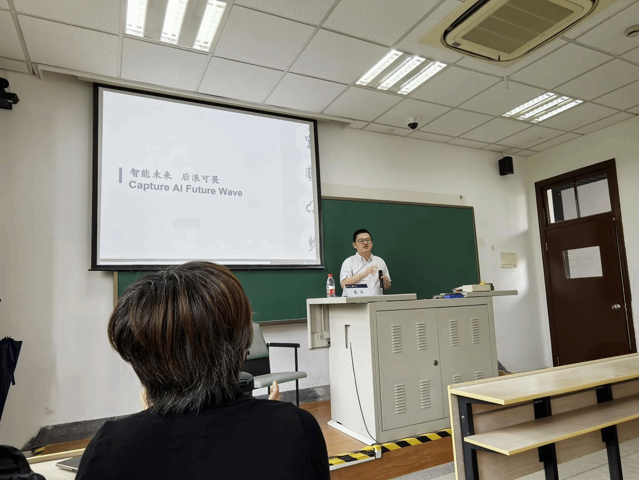 自由交流环节,蔡老师和同学们进行了热烈的互动,对同学们提出的问题悉心解答,例如目前AI对服务贸易的冲击影响、AI带来的社会政策问题、未来商科毕业生的就业趋势问题等。