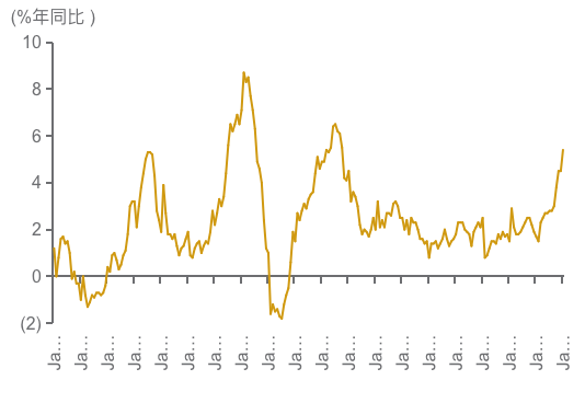 为防控疫情所采取的隔离政策不只导致短期消费与生产活动下降,还会通过企业倒闭/结业、失业增加、收入下降带来第二轮的需求与供应冲击。这类冲击一旦发生,即便疫情结束了,相关的经济活动也很难完全恢复。这就要求政府在当前形势下采取积极的财政政策(例如给企业和低收入家庭提供补贴、减免税费等)和灵活的货币与信贷政策(例如保证流动性充足、避免抽贷断贷、暂时性调整贷款标准、减免利息、提供利息补贴等),尽可能减少企业破产倒闭,尽可能避免员工由暂时性失业转变成永久性失业,而不是简单地刺激需求。相反,由于停工停产所导致的供应减少,宏观决策部门反而要关注在某些领域(尤其是与民生息息相关的基本生活资料和必需服务领域)出现短缺的风险,推高本已高企的通货膨胀(2020年1月份CPI通胀率达到5.4%,为8年来新高;图4)。这种滞涨风险制约了今年需求刺激政策的空间。