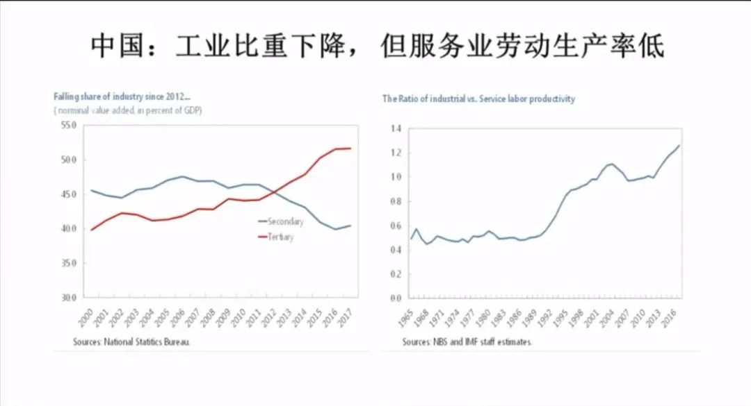 所以提高劳动生产率,同时提高制造业更多的提高服务业劳动生产率,就变成了我们能不能迈向高收入的这个阶段,我们不能跨越中等收入陷阱一个核心问题。