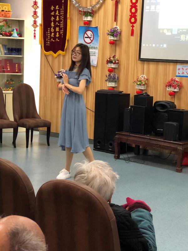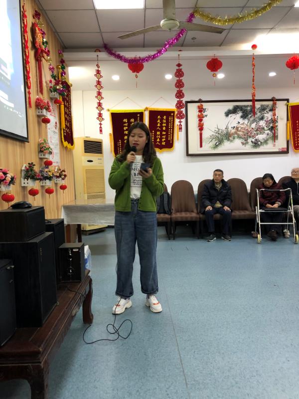 志愿者邱兰婷说:“第一次来世纪养老院,因为唱歌技巧不是很娴熟,所以虽然准备很久但还是有点忐忑。但是当我上台演唱的时候,老人们并没有厉声厉色,而是静静聆听,有的老人甚至在跟着唱,让我十分惊喜。合照的时候,老人们摆出剪刀手说‘茄子’,好像坐在我们面前的是一群孩子。其实老人也是孩子,他们也喜欢玩喜欢笑,只不过年龄稍大而已。”