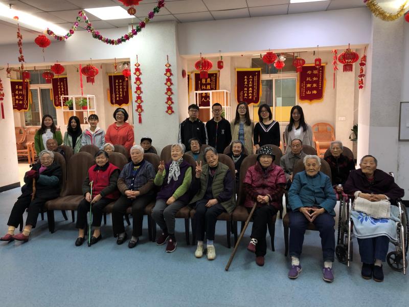 上午9:10,十位志愿者组成志愿者团队,在南区食堂门口集合,一同出发前往世纪养老院。复旦的志愿者已经是世纪养老院的常客了,这一次他们给老人们带来各式的节目,老人们聚在一起,共同欣赏志愿者们的表演。
