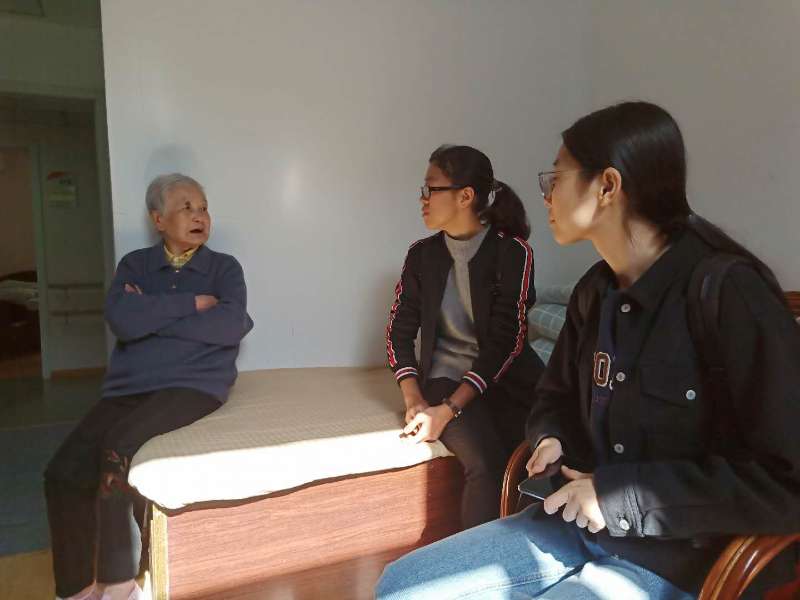 唐兴艺同学说:“奶奶们热情招呼我们坐下后,还没等我们开口,其中一个奶奶便先聊了起来。奶奶一直在说,大概是在说伤心事,可能奶奶只是需要一个倾听者,这次我没办法用言语安慰,那我就当一个倾听者,或许说出来也会让她感觉好一点。其实更多的是一点内疚,是那种你勾起别人的伤心事,却没能给予安慰的内疚。但是我也十分开心,至少见面和离别的时候,奶奶笑得很开心。”
