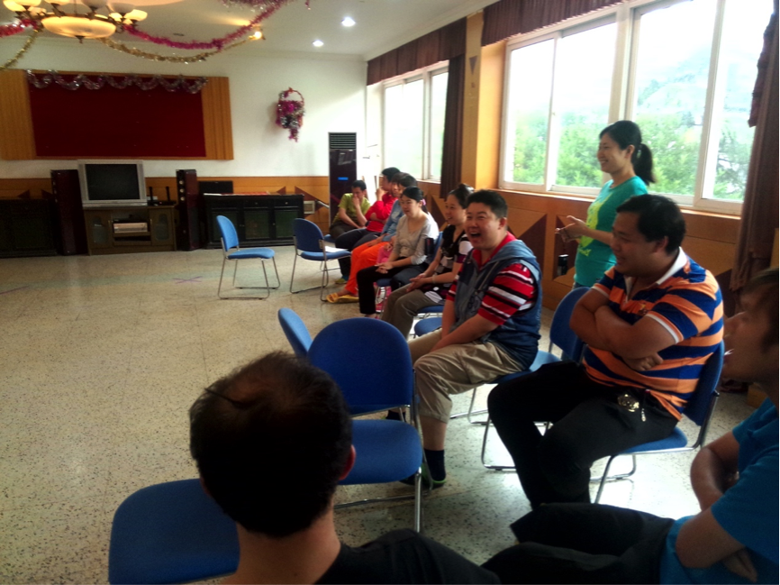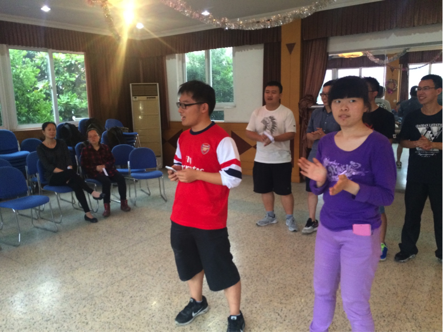 志愿者们介绍完了自己,接下来便开始了游戏的环节。第一个破冰的游戏是“你我的歌”。志愿者们给学员们分发了印有歌词的纸条,选择的都是学员们所熟知的经典老歌。学员们在唱出自己歌词的同时,也不断地去寻找和自己唱着同一首歌的人。最终,游戏结束时学员们纷纷找到了同伴,自发地分成了三组,也使接下来的活动更顺利了。