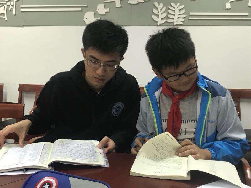 除了学业方面的问题,小朋友们还会讲述自己生活和学习上的故事。志愿者们看他们休息时嬉笑打闹,听他们吐槽学校里的各种小事,也听他们无边无际的想象。在变得熟悉之后,小朋友们也会和哥哥姐姐们玩闹。例如互相考英语单词和短语,询问大学里面的生活,互考算术题。