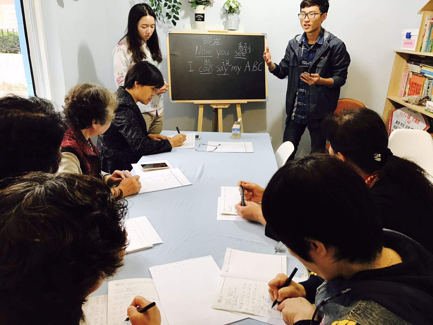 更是让人倍感亲切。老人们围坐在桌边认真记笔记、口中重复着夹杂着上海口音的英语念念有词的模样最打动我,让我深刻地体会到了“活到老、学到老”的精神。