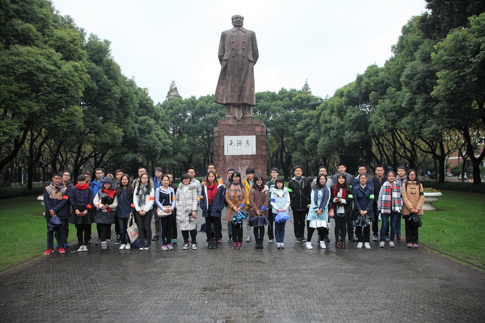 的同学们会合在复旦正门的毛主席雕像前,参加本次“旦愿有你,共济人海”长征主题两校联谊活动。尽管天空飘着小雨,气温很低,但同学们的热情不减。在两校同学们挑选袖标打乱分组过后,本次活动便正式开始了。