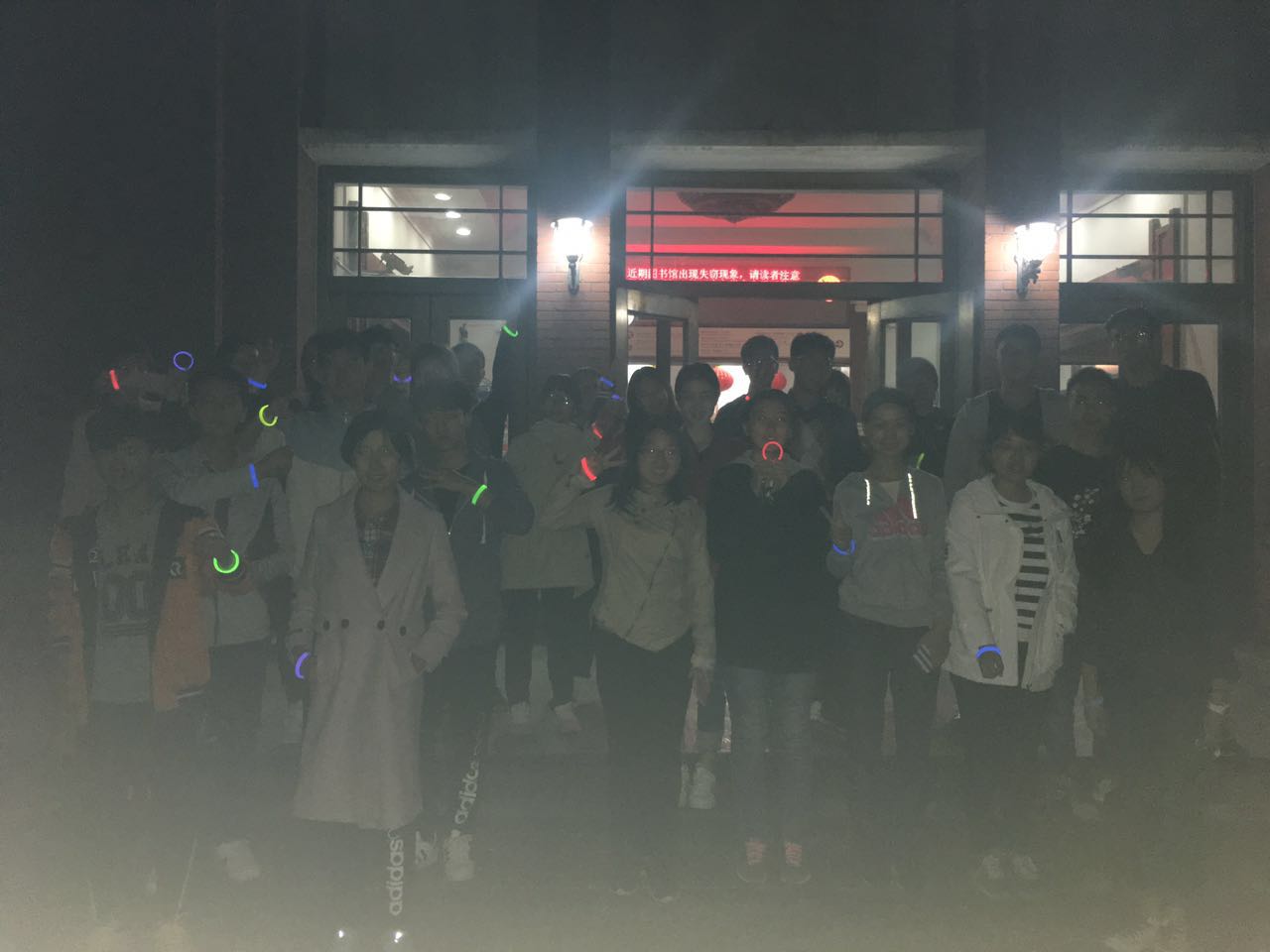 活动负责人早早地就搬着矿泉水来到理科图书馆门口等待,学员们陆续到场并领取了荧光手环,五颜六色的手环在夜色中呈现出别样的光彩。人员聚齐后进行充分的热身活动,帮助大家活动开了四肢,避免在运动过程中僵硬的肌肉可能会造成的损伤。很快,大家热身结束,整装待发,本次乐跑活动也就正式开始了。