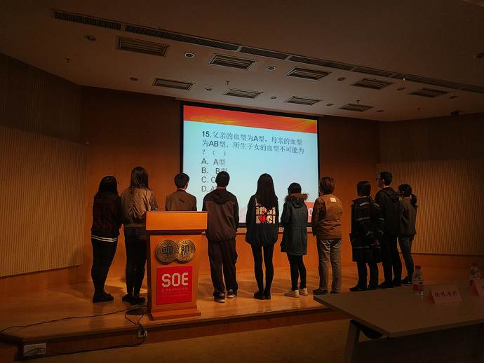 接下来随即进入第一轮比赛,各组同学按次序全部上台回答问题。竞赛题目不仅包括