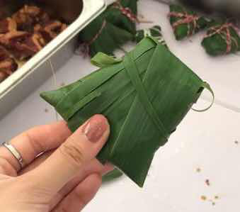 5月27日下午15:15,30名同学准时在春晖食堂集合,摩拳擦掌地准备一试身手。虽然绝大部分人都从来没有包过粽子,但这丝毫不影响大家对活动的热情。活动现场气氛高涨,欢声笑语中,春晖食堂的师傅手把手地教同学们如何包粽子。粽叶飞扬,麻线穿梭,一个个嫩绿诱人(奇形怪状)的粽子就这么诞生了。菱角粽,长形粽,甚至扁平粽、八角粽,还有只有两粒米的粽子,经一ers脑洞大开,踊跃行动。节日的欢乐洋溢着整个食堂。