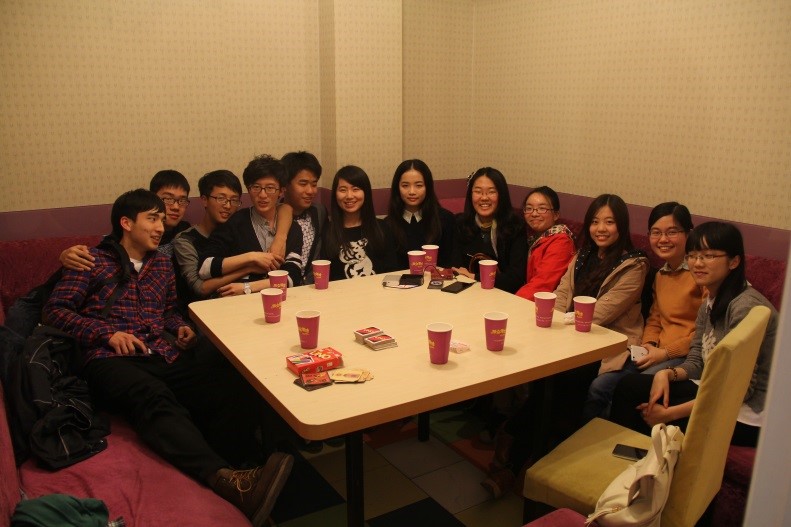 吃饱喝足,我们又出发去了位于邯郸路上的一家桌游店,藏宝海湾。在女生陆续赶到后,整个房间里男生比例竟大大降低。在狼人游戏中,我们的摄像师还是未能醒酒,以守卫的身份强行帮助狼人获得胜利,其无间道的精神令人敬佩。之后的uno考验了体力、反应速度和友情,大家都玩得十分尽兴。通过这次的活动,13经济的同学们更加了解了对方,随着天色渐晚,大家也相伴回到了寝室。