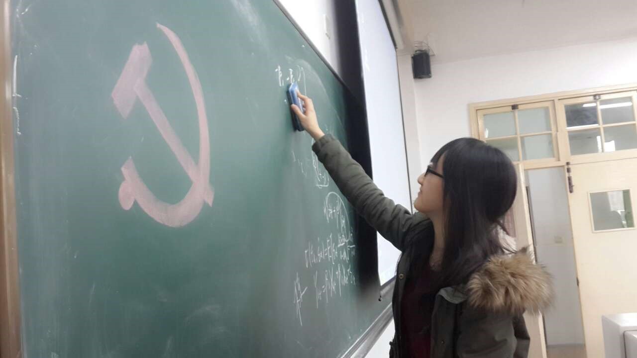 专业课,通识选修课,任意选修课……都能发现小组成员辛勤的身影,服务同学成为他们的荣誉和职责。活动时间长、服务范围广是此次实践活动的成功点,擦黑板活动在小组成员的集体智慧下变得生动有趣,他们会将黑板擦出党徽党章的图案,也会在擦干净的黑板上留下党徽的涂鸦,这样不仅增添了小组实践活动的乐趣,同时也潜在地向同学们宣传了党文化,宣扬了党服务群众的主张和宗旨,使这次群众教育实践活动更加贴近群众、深入人心。小组成员对擦黑板这一活动都非常积极,取得了良好的效果,也在擦黑板行动中受到了同学和老师的认可。