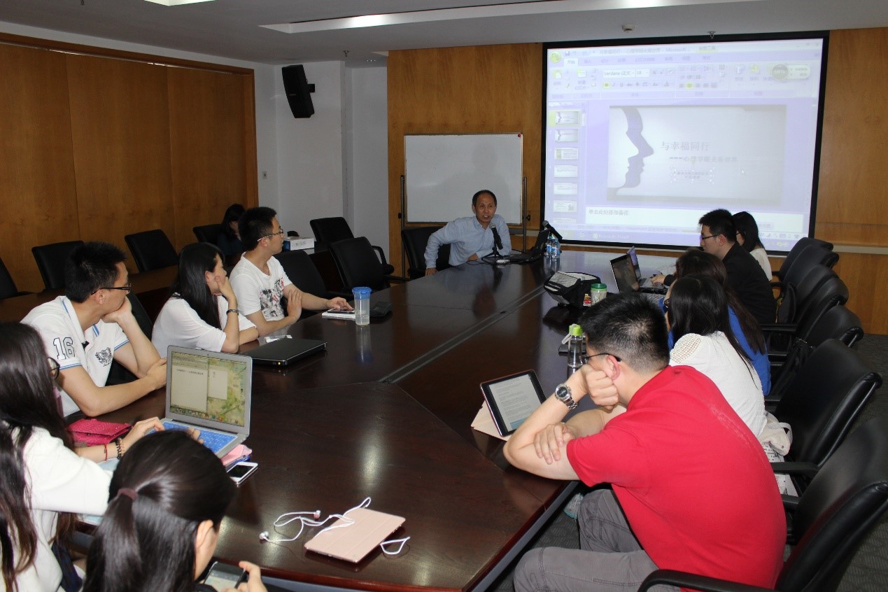 心理学系主任、心理研究中心主任、上海市心理学会副会长、上海高校心理咨询协会会长孙时进教授为13基金班开展了题为“与幸福同行——心理学眼光看世界”的专题讲座。讲座过程中同学们踊跃发言,与老师积极互动,师生共同探讨了如何建立新的看世界的视角,新的人际关系,新的生活方式。