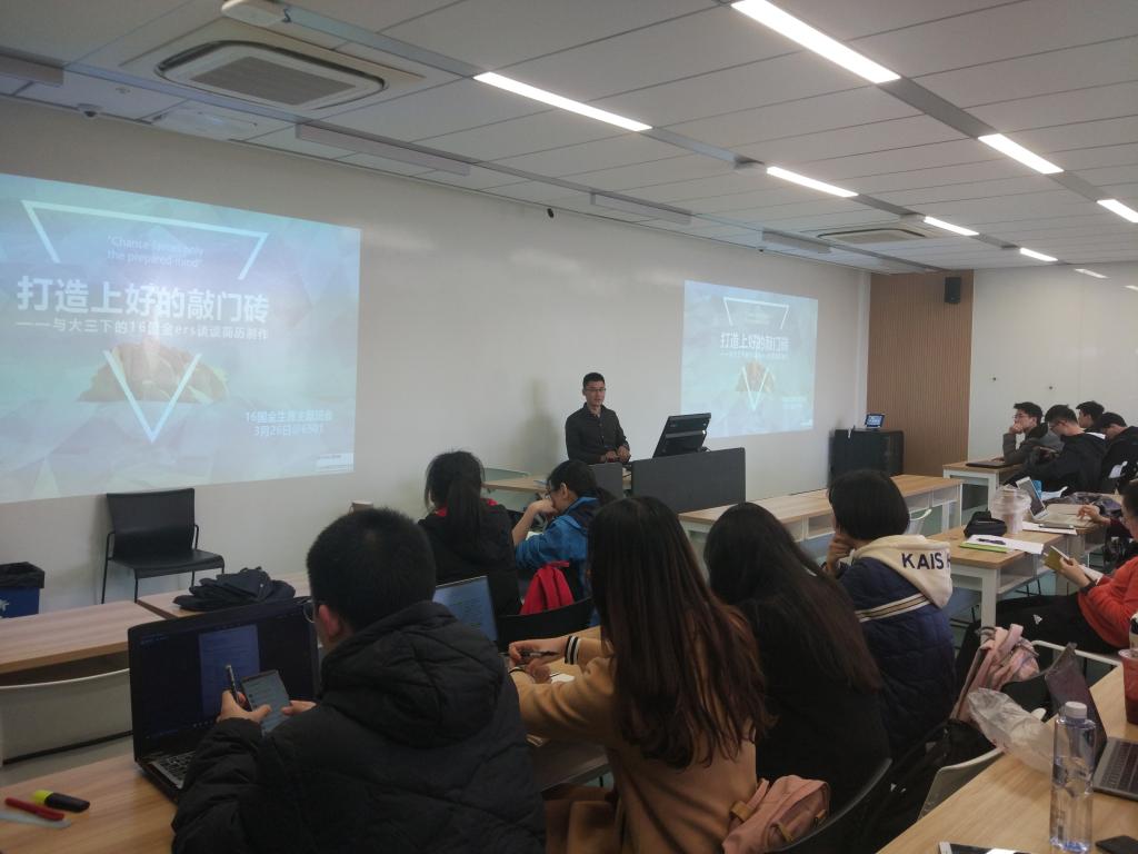此次班会为大家提供了与职业生涯相关的资源与途径,帮助大家找准自身定位,提升自己求职竞争力。“长风破浪会有时,直挂云帆济沧海”,相信16国金的同学在此次生涯班会过后,会逐渐找到自己前进的方向,发现自己,逐梦远航。