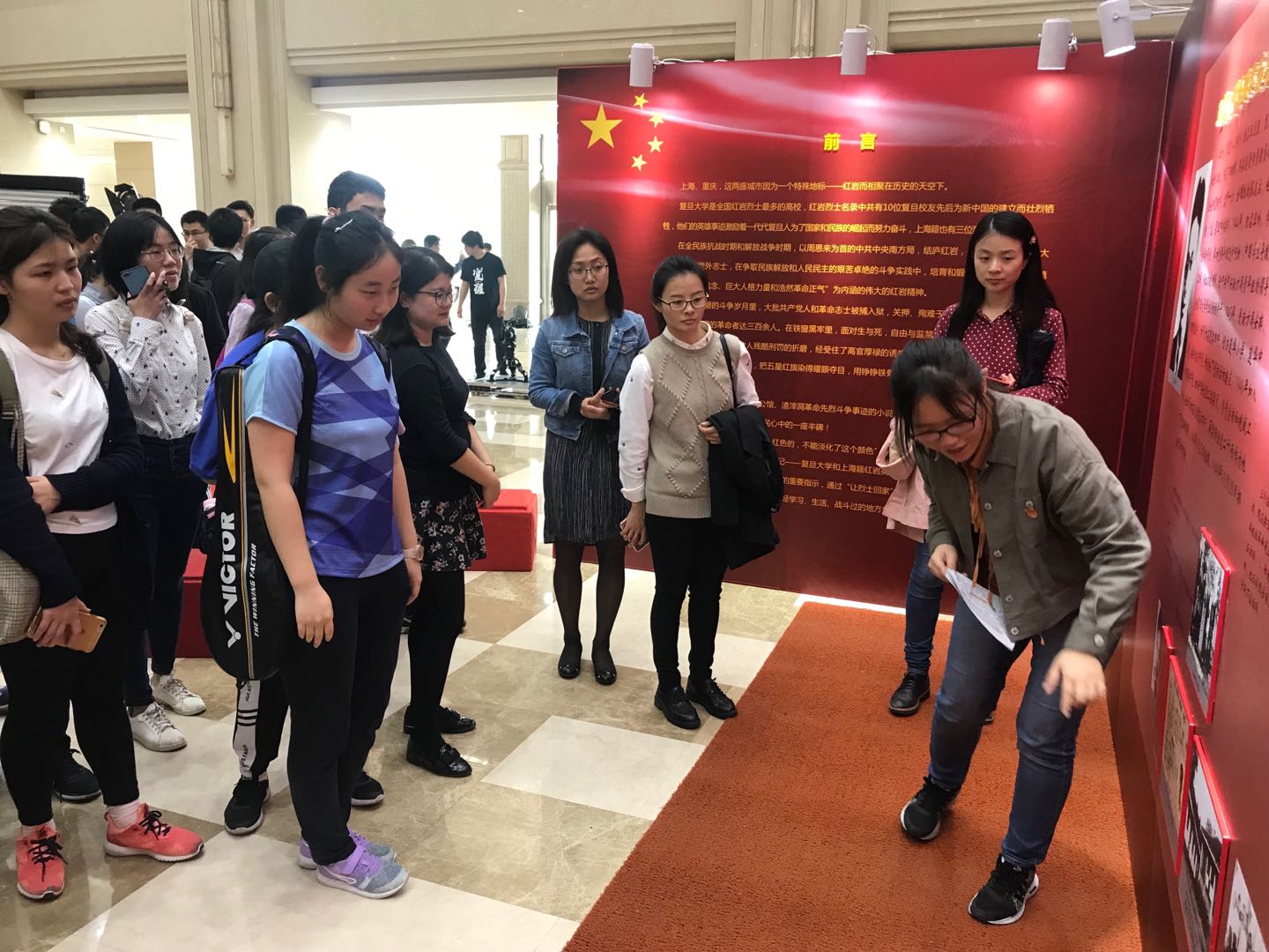 1班党章学习小组的同学们认真聆听讲解员的介绍,凝视着烈士照片和历史资料,不无感到历史的凝重和使命的艰巨,心中对红岩烈士的敬仰之意愈发浓重。
