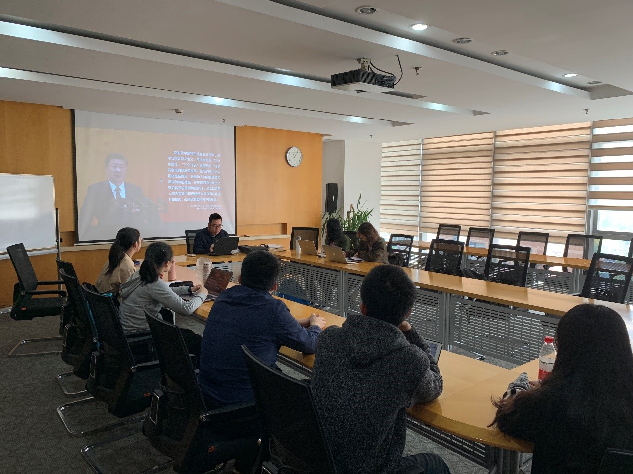 本次会议由支部书记徐邦柱主持。首先,主持人为大家介绍了习近平新时代中国特色社会主义思想的核心内容,引导同学们进入接下来的讨论。在讨论过程中,支部书记对同学们的观点做了补充并给予指导。
