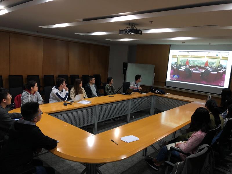 党章学习小组的成员们首先观看了新闻联播对习近平总书记在中共中央政治局第十四次集体学习时的重要讲话进行的报道。报道中不仅有习近平总书记的讲话,还有相关的专家的观点表达,既回顾了历史,又站在新时点上阐释了五四精神的时代意义。