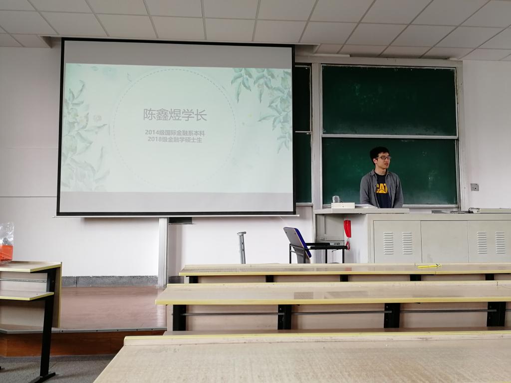 首先向我们介绍实习经验的是2018级金融学科学硕士研究生陈鑫煜学长,他主要向我们强调了实习质量的重要性,并以自己的三份实习经历为例,让我们深刻地了解到什么是高质量的实习。同时,他也简单介绍了不同公司的面试流程,内容详实而富有逻辑性。然后是2015级经济学系本科生宋世超学长,他认为实习工作要适合自己,这一点是重要而又易被忽视的。同时,他也对我们学习生活提出了一些建议。最后,2015级国际金融系本科生余思娴学姐的分享更加侧重在实习时要保持的心态。经过3位学长学姐的描述,同学们记下了许多宝贵经验。