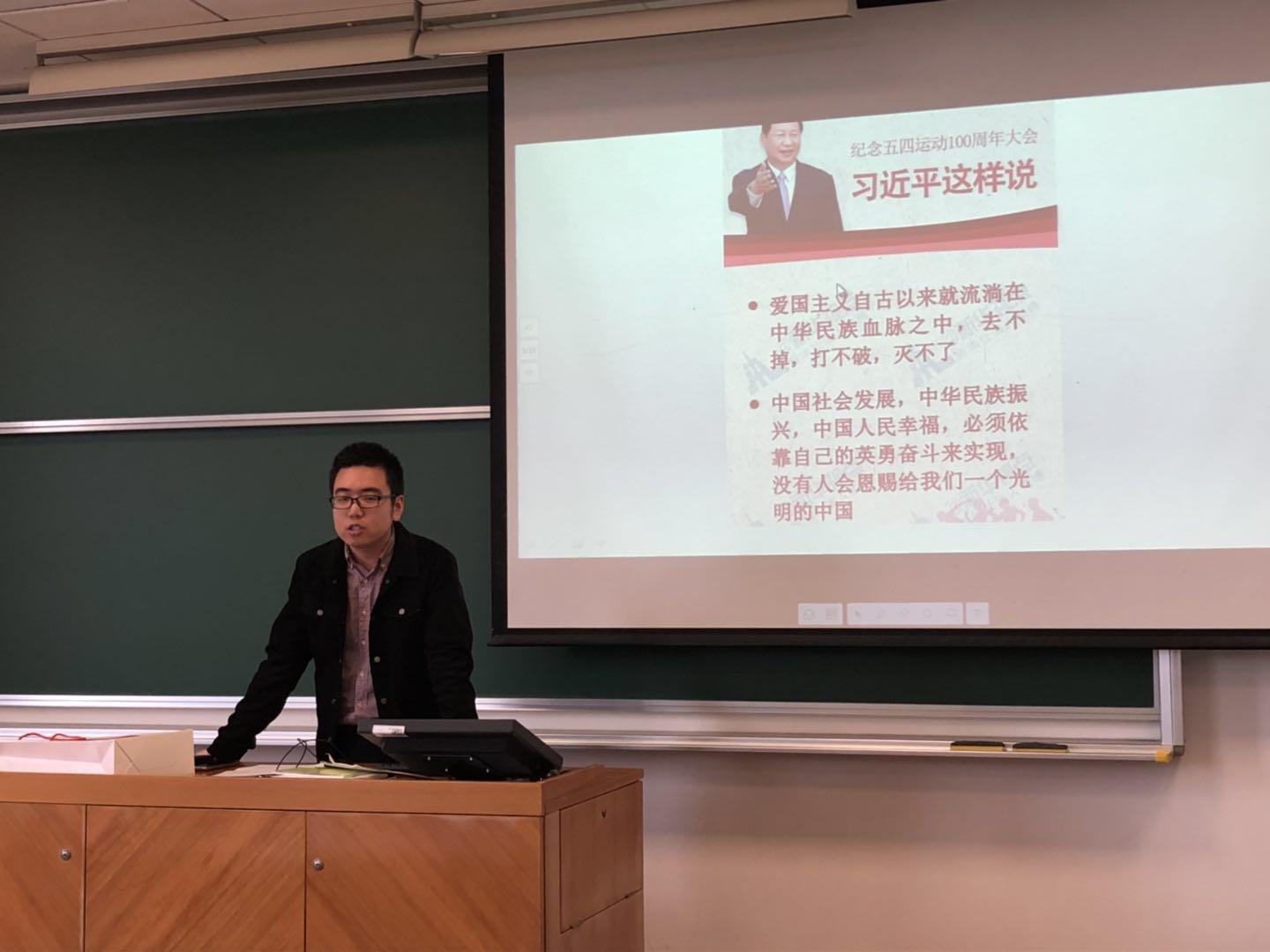 时逢五四运动一百周年,百年前青年们爱国的热血如今依然在我们这些少年人的心头涌动。他们顺应时势、追求进步而发出的第一声呐喊,得到了整个社会如潮的回应,并成为了新民主主义革命的辉煌开端。五月的第一次班会,就以五四精神为主题,旨在令复旦经院的青年学生们铭记爱国精神传统、弘扬优秀思想文化,将青年人的发展与国家社会的命运相结合。