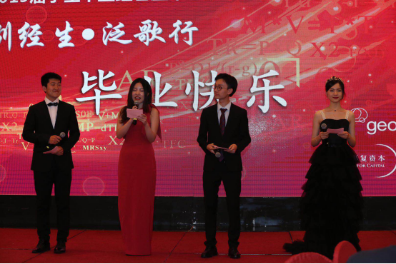 由15经济韩志周、15国贸张新月、15财保陈宏松、15国金朱紫荆五位主持人共同开场