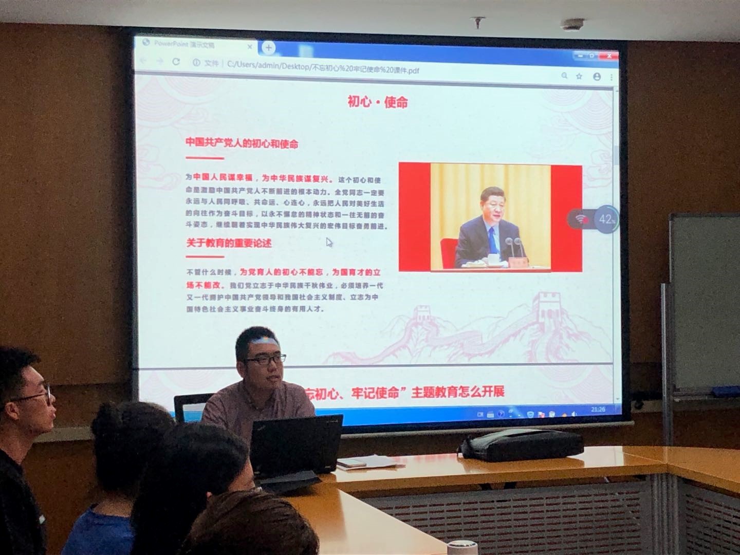泛海楼614开展组织生活。本次组织生活会议的主题是“不忘初心、牢记使命”,徐邦柱老师首先向大家介绍了什么是中国共产党人的初心和使命,即为中国人民谋幸福,为中华民族谋复兴,并向大家强调了守住初心,牢记使命的重要性,接下来各位支部成员分别围绕这一主题、结合自己近半个月的学习生活经历向大家分享了自己的看法。