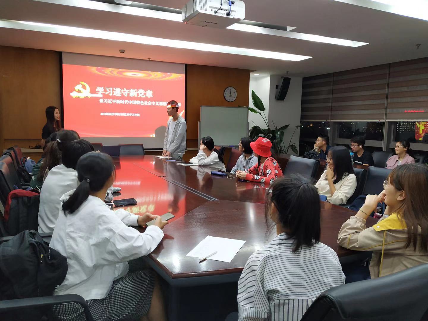 2019级经院3班党章学习小组的同学们齐聚泛海楼805,在辅导员余思娴老师的带领下开展了第三次党章学习小组活动。