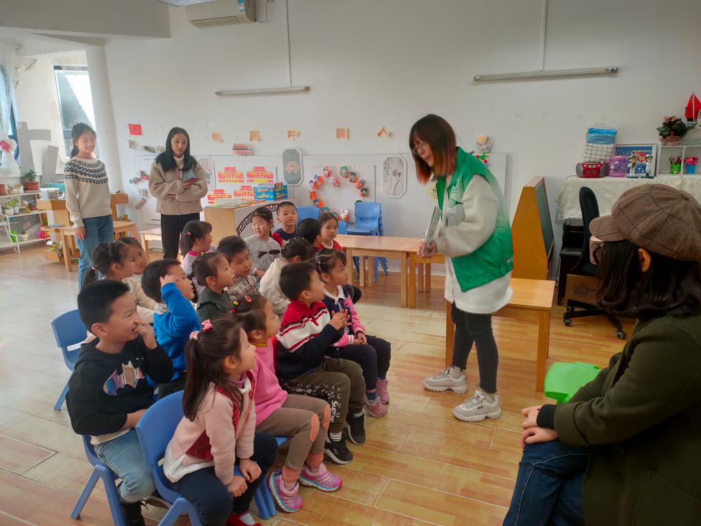 的四位同学来到杨浦区民星幼儿园,与小朋友们开展了一次愉快的“快乐星期二”活动。活动内容为讲述绘本故事和做游戏。