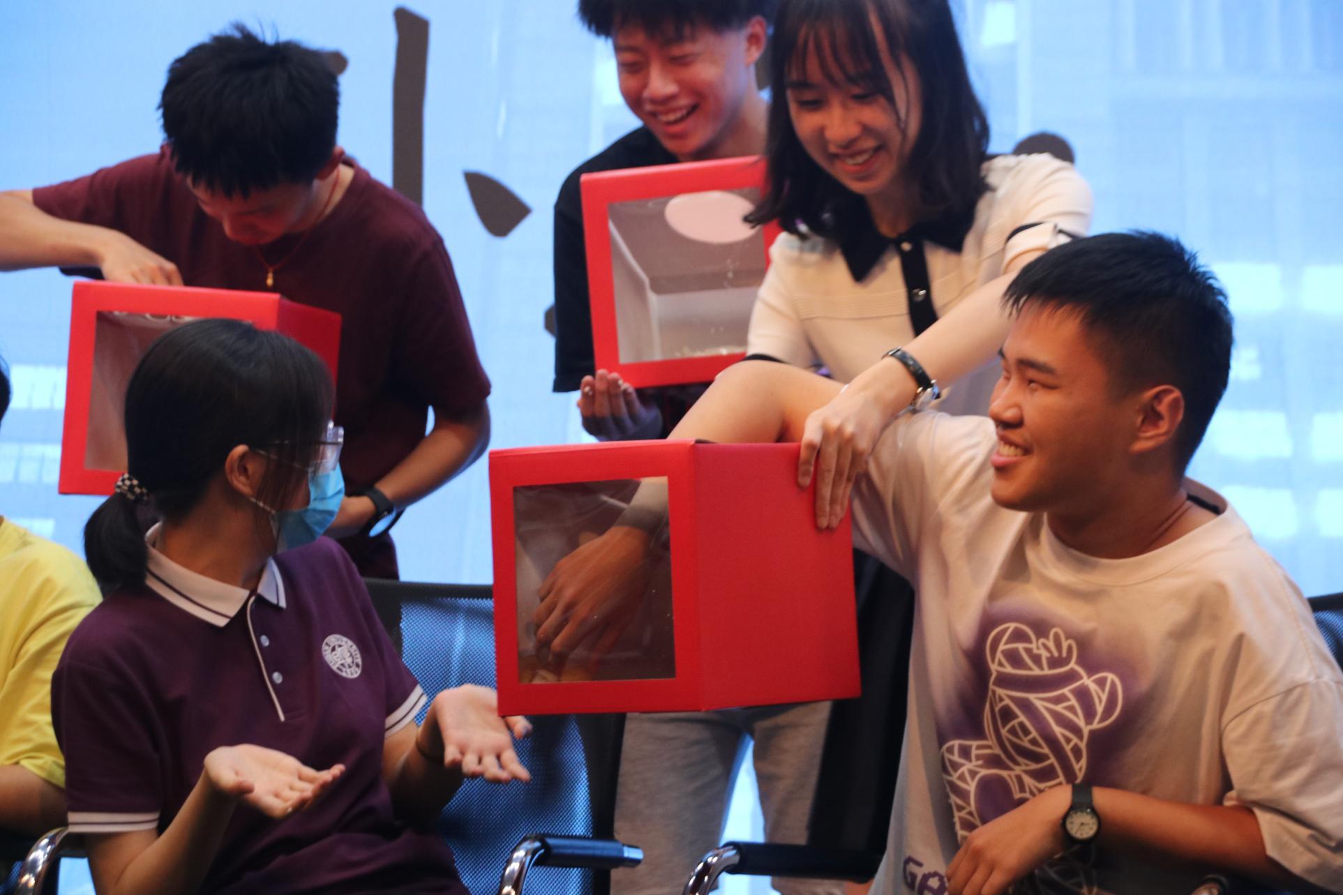 第二部分是由班委组织策划、主持人引导进行的游戏环节,由每个联谊寝室每轮依次派出同学参加。既包含“叠报纸”“一元五角”等耳熟能详的经典游戏,也包括众多班委设计、优化、创新的“谁是卧底+恐怖箱”的游戏。游戏进行多轮,充分调动了全体同学的积极性、拉近了人与人之间的距离、消除了新同学之间的陌生感。