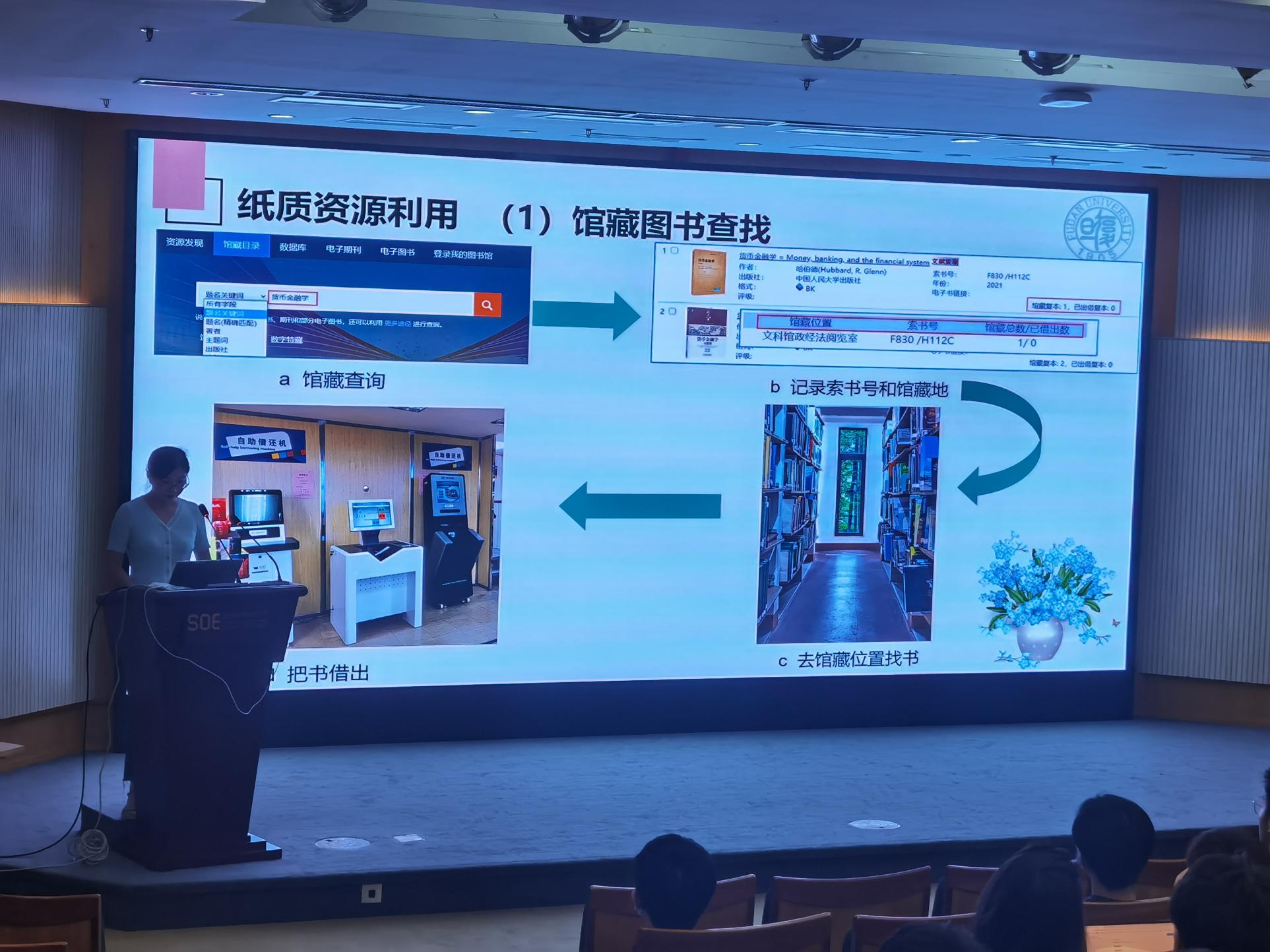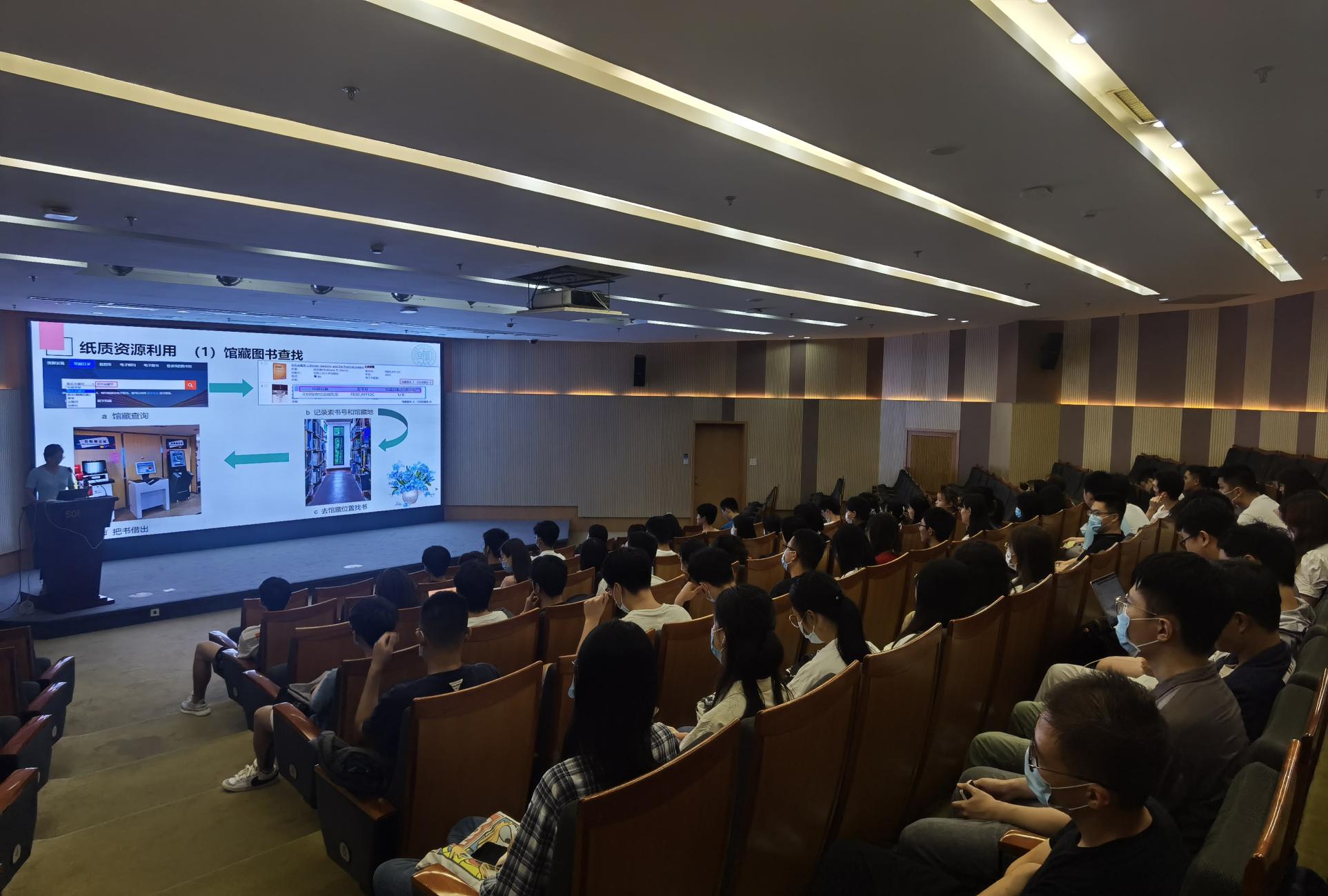 班会伊始,学校图书馆培训部谷老师受邀为同学们进行图书馆资源使用培训。她先是介绍了图书馆概况,包括图书馆构成、馆藏资源、图书馆网站主页等;然后讲解了图书馆纸质资源和电子资源的使用方法及相应的注意事项,灵活高效地使用图书馆内丰富的学术及数据资源无疑会对同学们的学习和研究大有裨益;最后谷老师还向同学们推荐了重点服务(如研究生公开课)和其他服务(如移动图书馆)。