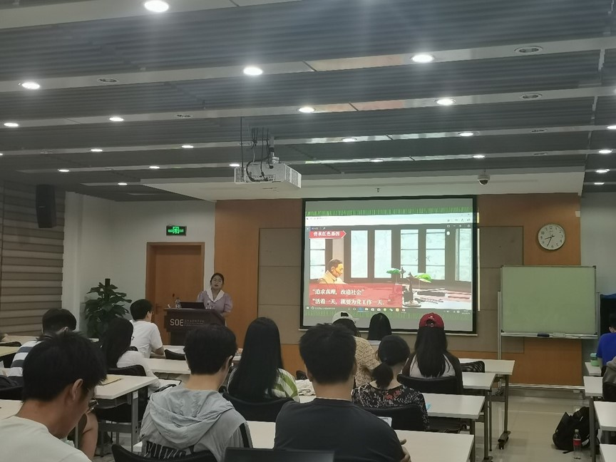 马克思主义学院博士研究生、博士生讲师团明星讲师董树婷老师,带来党课《讲好望道故事,传承初心使命》。陈望道以及众多革命前辈传承初心使命的事迹为广大共产党员留下了一笔宝贵精神财富,新生党员纷纷表示深受鼓舞。