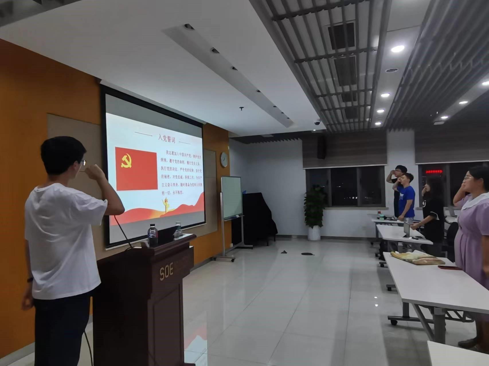 活动首先重温入党誓词。全体新生党员面对党旗庄严宣誓,重温入党誓词和入党初心。在一句句铿锵有力的宣誓声中,全体党员牢记初心誓言,满载爱国主义精神,用坚定的共产主义信念充实自己的内心。