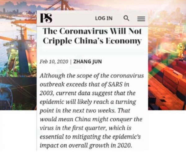 张军:“冠状病毒不会削弱中国经济”,截图来自辛迪加报业