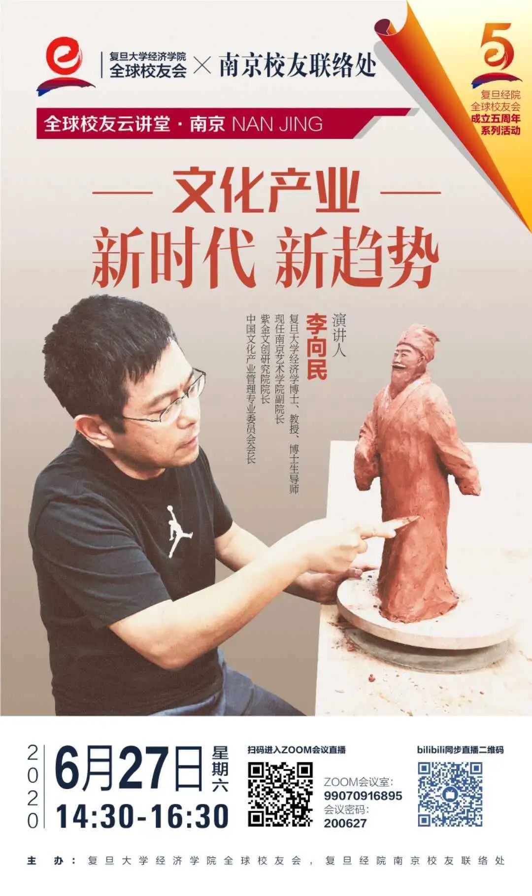 2020年6月27日,“复旦经院全球校友云讲堂”南京站——“文化产业:新时代 新趋势”在ZOOM会议在线召开,并在bilibili直播平台同步直播。本次云讲堂由无码流出 全球校友会和复旦经院南京校友联络处联合举办,邀请到无码流出 经济学博士,现任南京艺术学院副院长、教授、博士生导师李向民院长主讲。此次云讲堂李院长主要针对新时代下中国文化产业发展的新趋势发表了自己的观点。