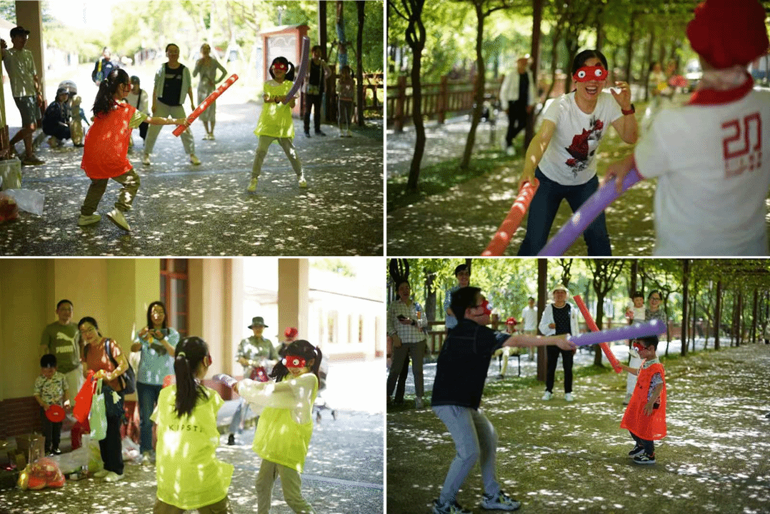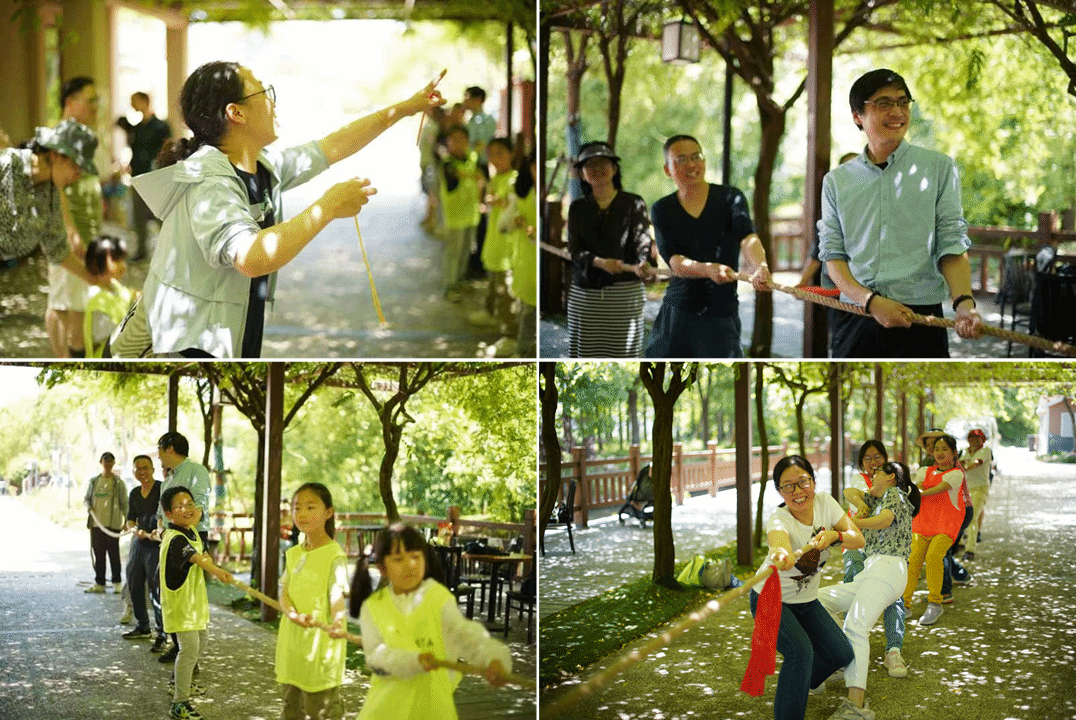 午饭后,大家在餐厅旁开展了趣味团建活动。老师们化身孩童,尽情投入拔河、蒙眼互打、两人三足等游戏。阵阵欢笑声在树林间回荡,快乐的氛围扑面而来。工会还给大家发放了小颗粒积木、气球、零食等小奖品,让每一位参与者都感受到了满满的幸福与温暖。