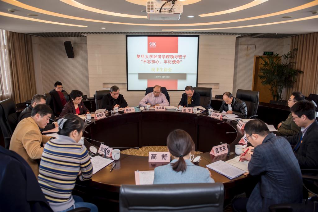 领导班子在泛海楼808会议室召开“不忘初心、牢记使命”专题民主生活会, 院党委书记陈诗一主持会议。校党委常委、副校长张志勇,校纪委副书记胡华忠,第六指导组组长黄丽华,联络员赵崧捷一行到会督导。院长、院党委副书记张军和领导班子其他成员参加会议。学院党委对开好这次专题民主生活会高度重视,会前做了充分准备。学院党委中心组采取个人自学与集体研讨相结合的方式,深入学习习近平新时代中国特色社会主义思想特别是习近平总书记关于教育的重要论述,跟进学习党的十九届四中全会精神,认真学习党章党规和党中央关于民主生活会的要求,广泛开展谈心谈话,交流思想、交换意见,同时对学习研讨中查摆的问题、对照党章党规找出的问题、调研发现的问题、师生反映的问题、谈心谈话指出的问题等进行系统梳理,认真开展检视剖析和对照检查,找准问题症结,深刻剖析思想根源,明确了整改方向和具体举措,并经集体讨论形成了班子对照检查材料,各班子成员也认真撰写了个人检视剖析材料,并根据学校第六指导组的意见作了修改完善,为开好民主生活会打下良好基础。会上,陈诗一代表院领导班子就“四个对照”、“四个找一找”的要求进行了检视剖析,并从思想、政治、作风、能力、廉政等五个方面深入分析了产生问题的原因。从强化理论学习,提升理论素养;强化班子建设,落实规章制度;推进教师发展,拓展育人机制;增强服务意识,提升服务水平;完善生涯教育,加强就业指导;强化党风廉政建设,严格执行工作纪律等方面明确了今后的努力方向和措施。