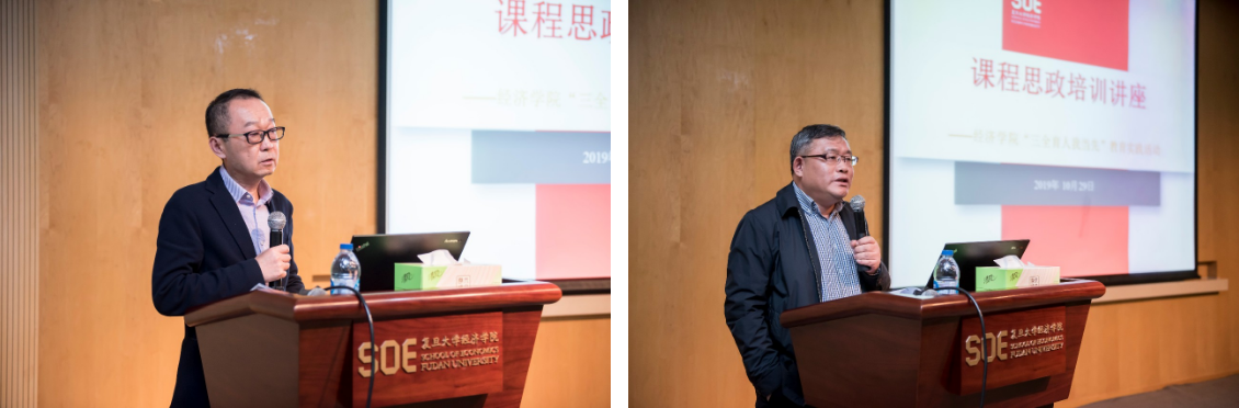 课程思政与教材建设专家组组长、国家精品在线开放课程和上海市高校课程思政教育教学改革示范课程负责人石磊教授作了“课程思政”辅导报告。石磊教授指出“课程思政”和“思政课程”是不同的概念,“课程思政”是注重挖掘专业课程所蕴含的思想政治教育元素和所承载的育人功能,只要坚持实事求是的科学精神、严谨负责的教风和问题导向的教学方法,以积极的态度对学生进行正面引导,在专业课程教学过程中讲好中国故事,就是好的课程思政。学术精神和课程思政建设并不矛盾。当然,课程思政也需要进行科学的设计和度的把握,做到学术思想、问题导向和思政建设相结合。石磊老师还指出,课堂是学生的,也是教师的,但归根结底还是学生的,学生欣赏的是老师基于学理、基于事实、基于科学认知的自由表达,并不欣赏老师捕风捉影、不求学理与证据的自由编造, 尤其反感老师把课堂作为自己发泄情绪的场所。求得全面的认知,作为教师需要苦读众多的文献,教好一门课,上好一节课,非常不容易。如果教师要让一门课程成为精品课,就必须要努力让每节课成为精品课。如果教师不想误导学生,真正达到观念与学术融合来育人就显得尤为重要。思想政治教育是政治课教学的任务,但育人不等于政治课教学,学校的任务是全员育人、全过程育人,全方位育人,“思想”不仅仅指通常所说的政治思想,还有学术思想、认知态度、文化素养、行为理念等等。石磊教授提出在讲授专业课的过程中,要本着实事求是的原则、三全育人的原则和科学求真的精神,讲问题,求规律,从学理角度把中国故事讲好,注重结合中国案例讲解,把对中国价值观的认同放到经济学普通分析框架中去;以马克思主义为灵魂,从学科方法论的阐述、学科知识对于实践应用指向的能力角度,开展课程思政教育。总之,教学的任务是以学理和事实传播知识信息,引导学生独立思考,以学术精神,客观、冷静、全面、系统地观察分析经济、政治、文化、社会、生态,改善知与行。课程思政必须恰当有度,润物无声,避免形式主义。最后,石磊教授以几个思政与学术精神融合的例子结束本次主题教育集体学习的专题辅导报告。