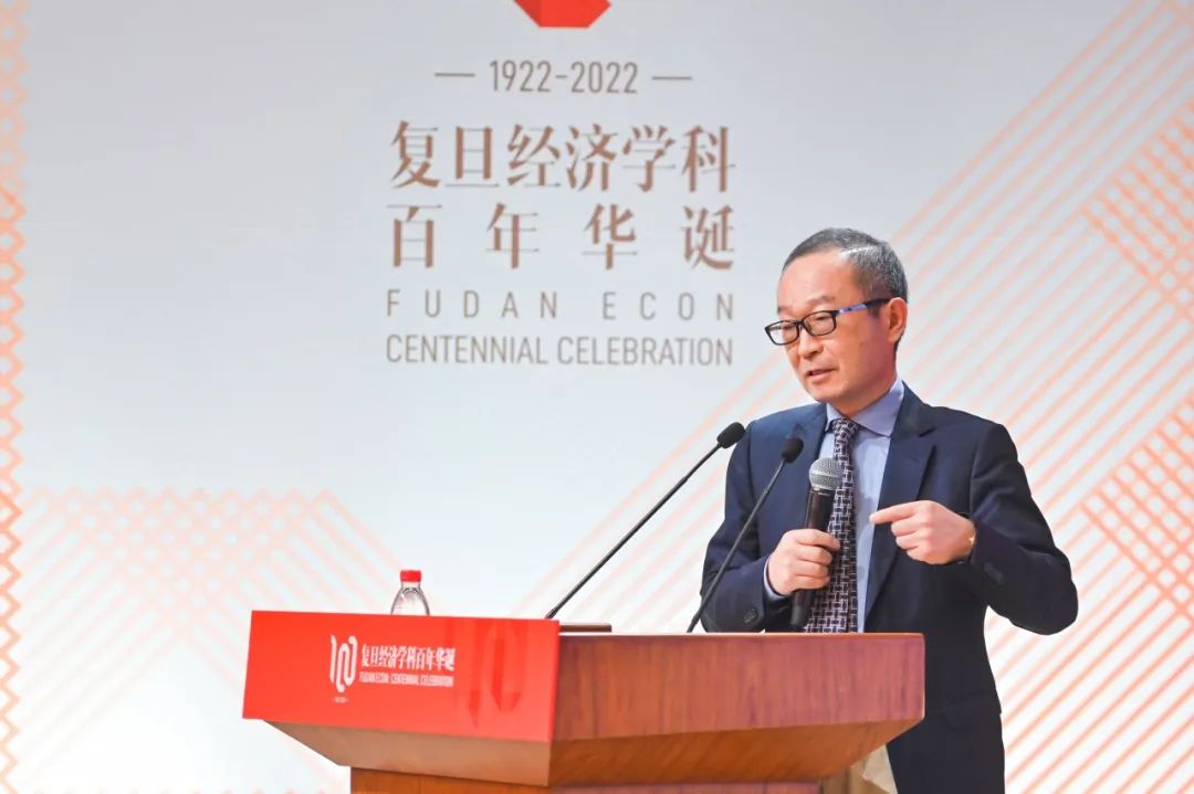 院长张军在纪念复旦经济学科百年主题活动上讲话。