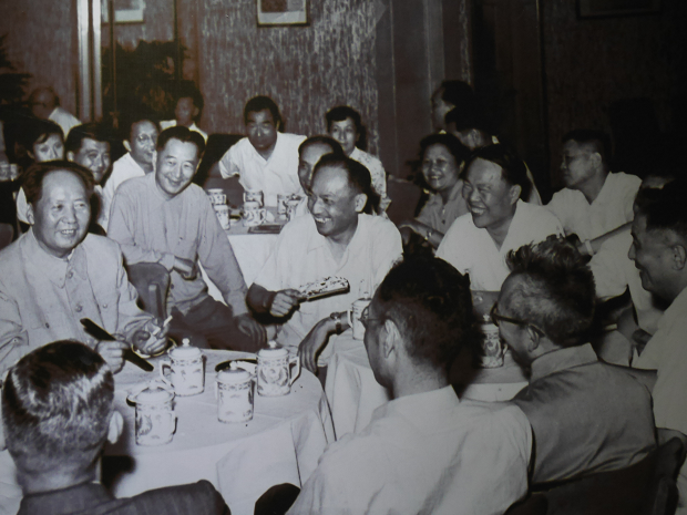 1958年,毛泽东主席在上海接见文教、卫生、艺术人士,复旦谈家桢、蒋学模、孙怀仁、章靳以等六位教授受到接见