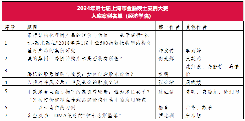 近日,从上海金融教指委传来喜讯,无码流出 许友传老师团队,何光辉老师团队,黄明、沈红波老师团队,张金清老师团队,沈红波、黄明老师团队,杨青、卢华老师团队,罗忠洲老师团队撰写的7篇案例,成功入库2024年第七届上海市金融硕士案例征集(按教指委入库名单顺序)。