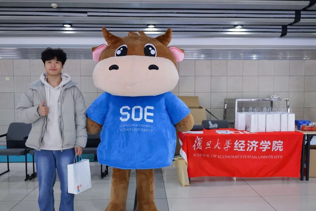 团委的同学们有条不紊地准备着给献血学生的慰问品,在活动开始后为献血学生提供指引。秘书处同学以经小牛的形象出现在现场,以亲切的形象和献血学生拥抱、合影,让同学们心中的紧张情绪烟消云散。