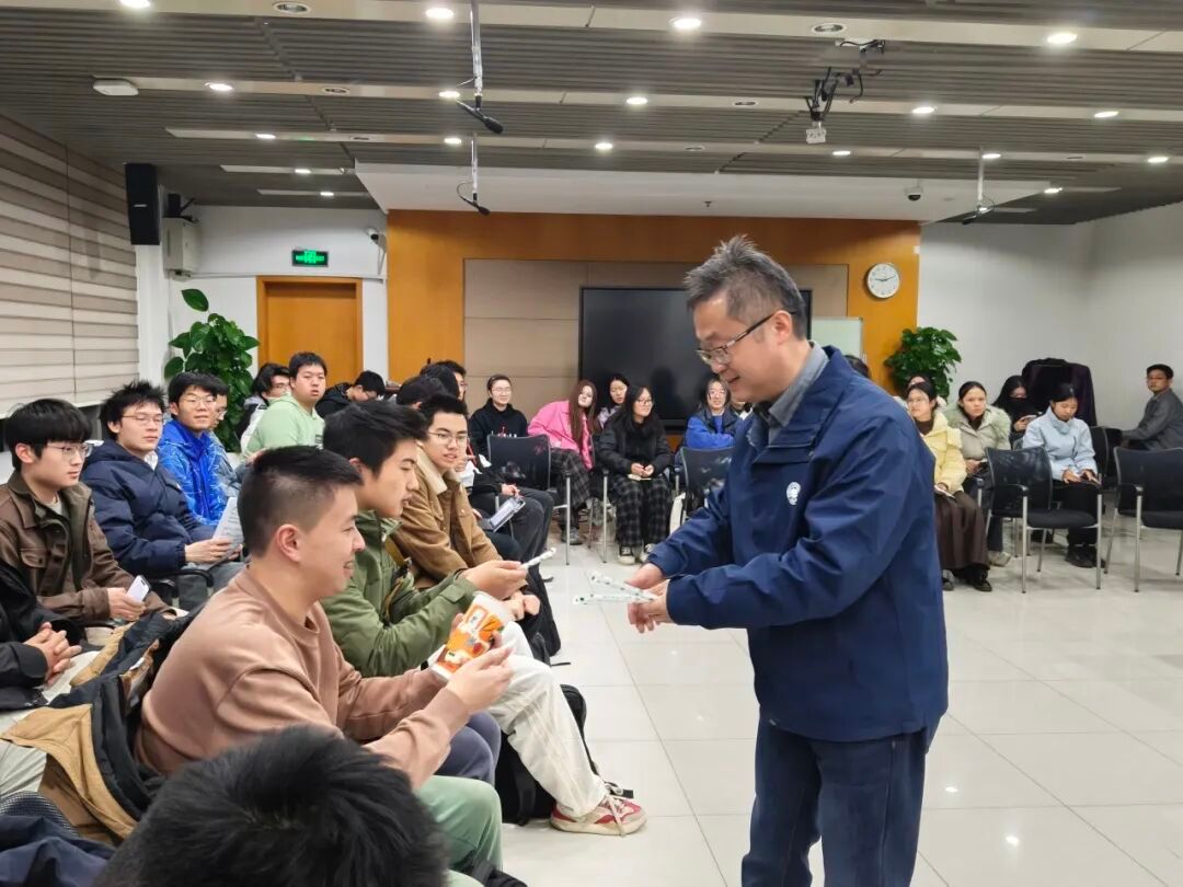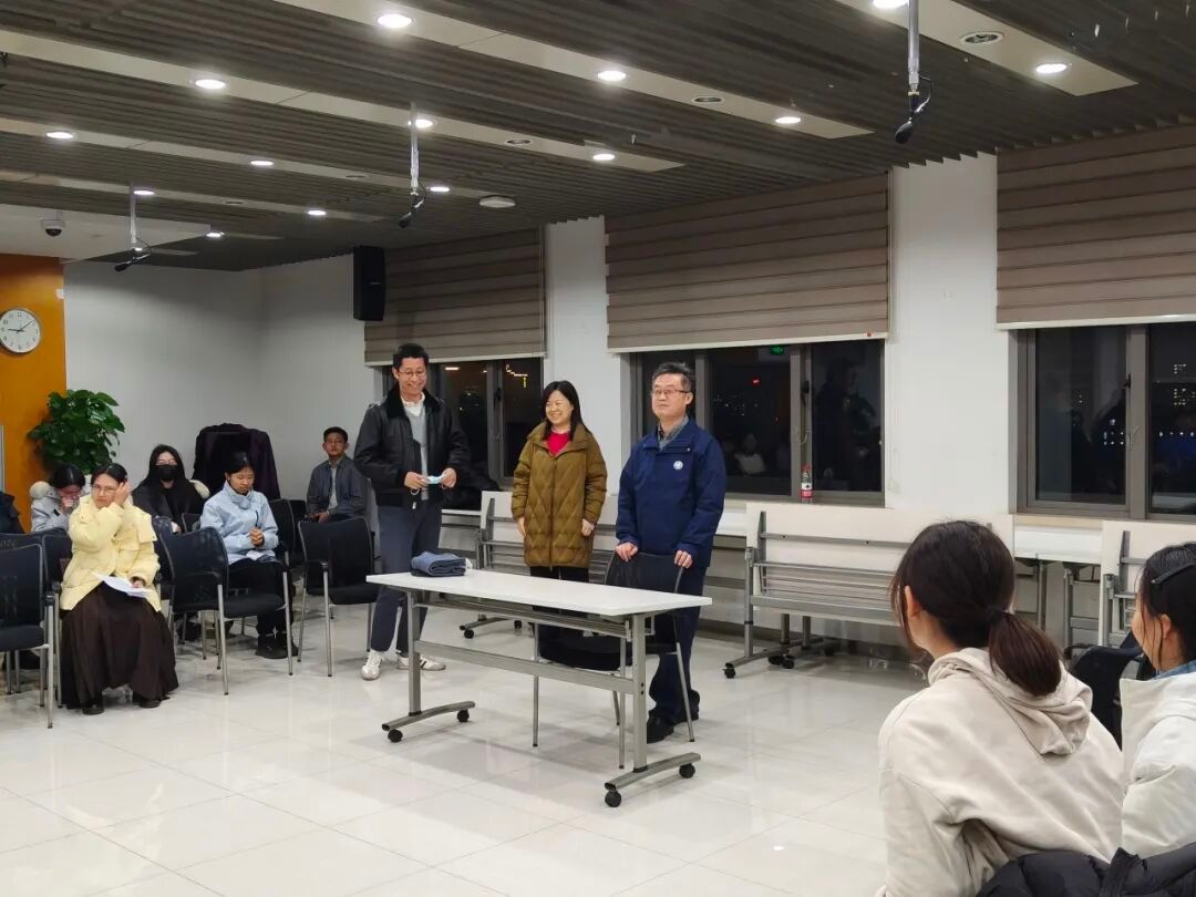 与国际金融学院2025级本科生班的四位辅导员——宋思瑶、刘桉贺、彭顾逸、蔡心怡老师也来到现场为同学们送来了贴心关怀。团学送来的清甜苹果与暖心饼干,辅导员老师们带来的满载关怀的金嗓子和饮料,全程陪伴的文艺部工作人员与提供专业支持的视觉艺术中心团队……这些点点滴滴,让大家深知,整个学院都是我们最坚实的后盾。