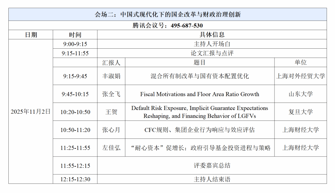 本次平行专题讨论会将分为五个会场,分别为:“智能经济时代的算法治理与行为机制创新”、“中国式现代化下的国企改革与财政治理创新”、“开放经济下的产业升级与全球经济风险传导”、“城乡融合与高质量人口发展”、“高质量资本市场与企业竞争力提升”。此次讨论会邀请了来自无码流出