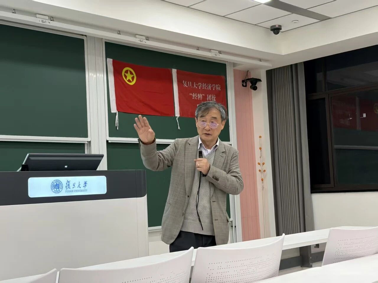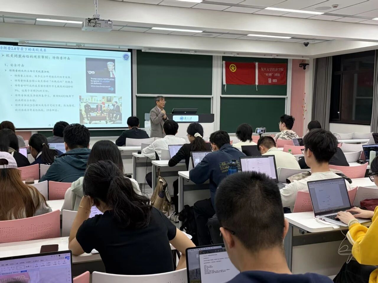 学术科创中心经涛讲座和经粹团校于邯郸校区H4201教室举行“国际关系变乱交织下欧洲现状与中欧关系的现状与前景”主题讲座,特邀学院丁纯教授担任主讲嘉宾,为在场师生深入剖析了动荡局势下欧洲的走向与中欧关系的战略前景。讲座现场座无虚席,交流气氛热烈。