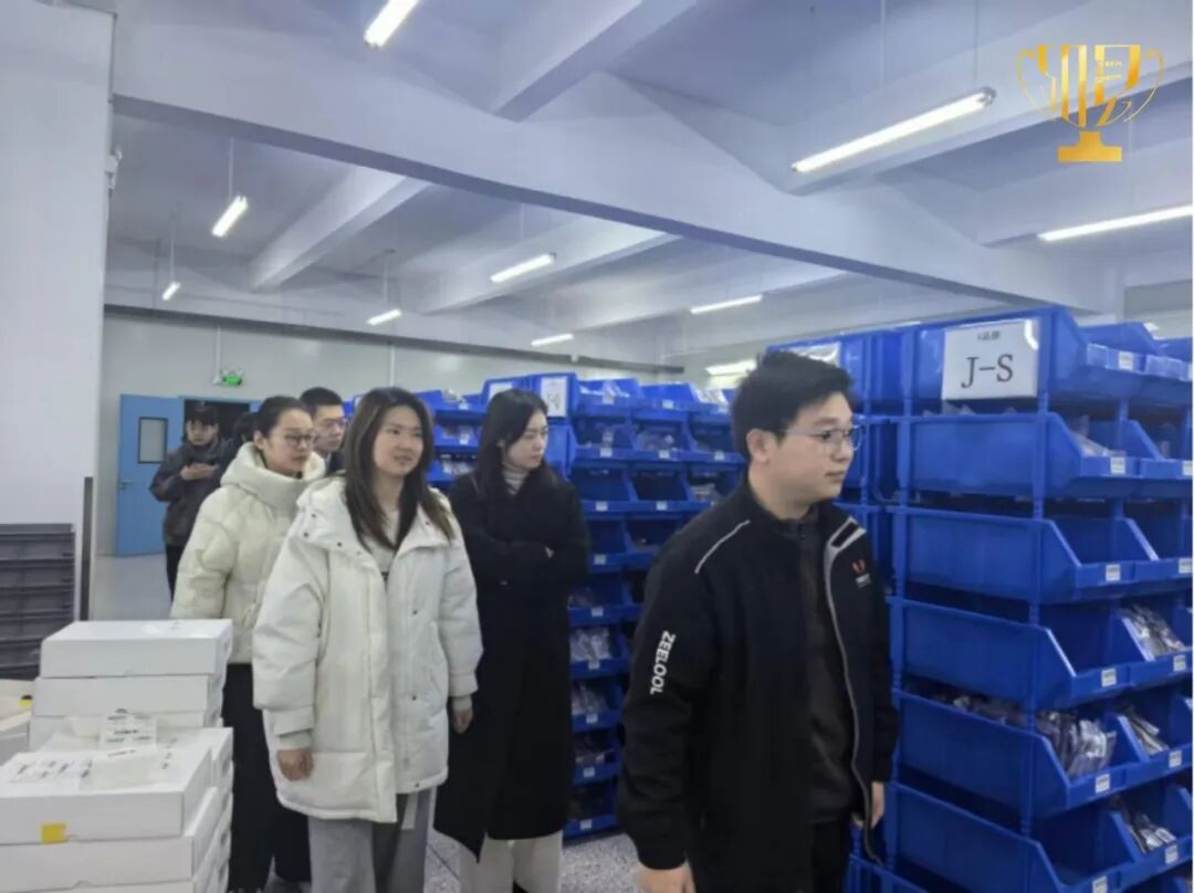 1月29日上午,在泽鹿光学科技有限公司,同学们的视角从生产制造转向全球流通。这家专注于跨境电商的企业,向大家展示了丹阳眼镜如何以更快捷高效的方式抵达世界各地的消费者手中。同学们参观了公司的仓储系统和一线工人工作场景。在这里,订单被快速分拣,每一个盒子里都装着一位特定客户的商品,在流水线上完成校验、包装、贴单,随后直接汇入全球物流网络。