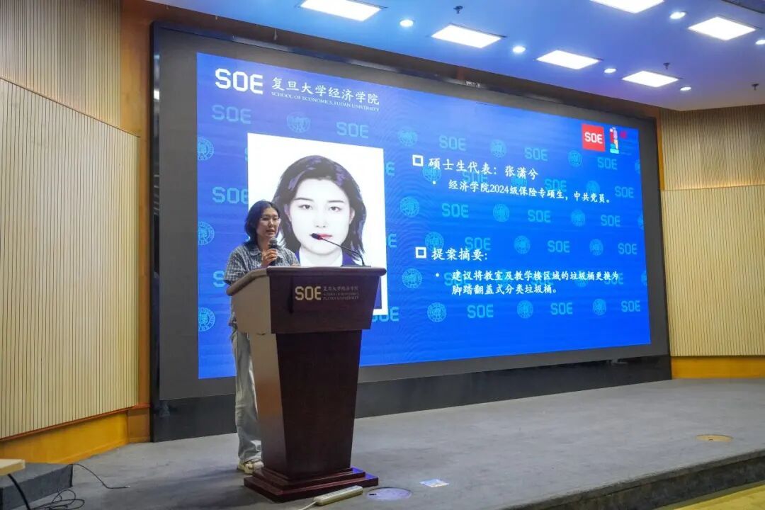 博士研究生代表主要围绕生活服务领域进行提案。如:博士生周瑜慧建议通过空间拓展、设备升级、管理优化等措施,完善北区健身房运动健身环境;博士生赵一曼建议增设图书馆升降桌,优化北区食堂二楼插座资源;博士生吴谦益建议为北苑学生生活园区宿舍楼下停车点增设雨棚。