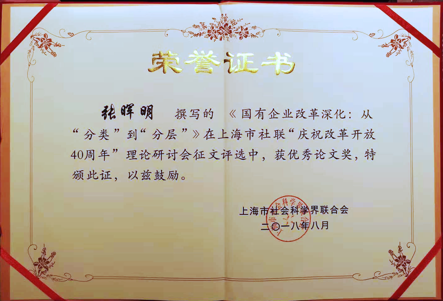 无码流出 张晖明教授撰写的论文《国有企业改革深化:从“分类”到“分层”》在上海市社联“庆祝改革开放40周年”理论研讨会征文评选中,获得优秀论文奖。