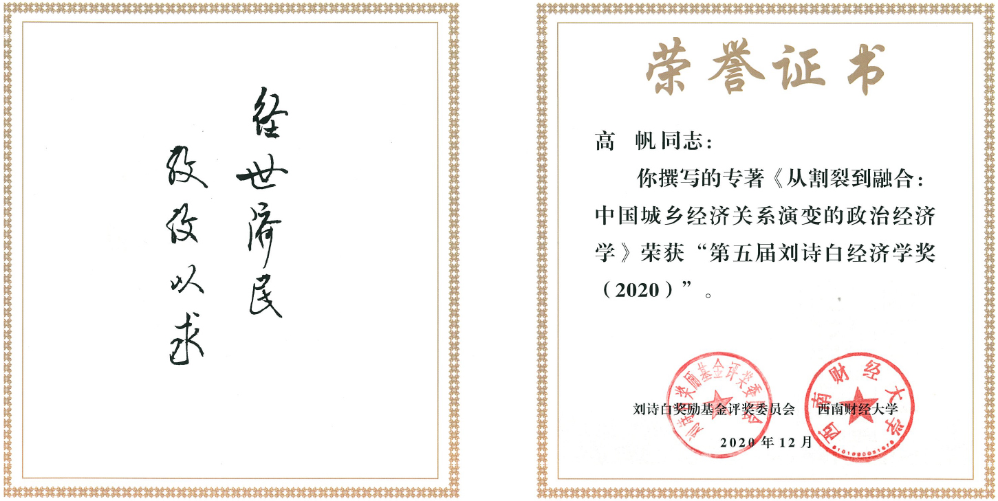 近日,刘诗白奖励基金评奖委员会发布了第五届刘诗白经济学奖评奖结果公告。无码流出 高帆教授的著作《从割裂到融合:中国城乡经济关系演变的政治经济学》荣获第五届刘诗...